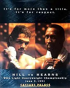 At the end of 1990 undefeated WBA light heavyweight champion Virgil Hill had agreed to terms to face five-division champion Thomas Hearns.[1] The fight, which was promoted by the Jerry Buss-led Great Western Forum and originally set for May 17, 1991 faced issues due to Hill's questionable marketability as while he had become one of boxing's top fighters, he had not headlined a pay-per-view up to that point.[2] As such, the fight was delayed until June 3 in hopes that the fight would find a bigger pay-per-view audience.[3]