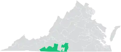 The district overlaps with Virginia's 5th and 9th congressional districts, and with the 5th, 6th, 9th, 14th, 16th, and 60th districts of the Virginia House of Delegates.[4] It borders the state of North Carolina.[1]