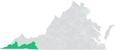 The district is located entirely within Virginia's 9th congressional district, and overlaps with the 1st, 4th, 5th, and 6th districts of the Virginia House of Delegates.[4] It borders the states of Kentucky, Tennessee, and North Carolina.[1]