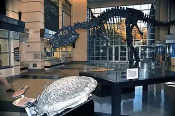 The Virginia Museum of Natural History is the state's natural history museum located in Martinsville, Virginia founded in 1984.[1] The museum has several different award-winning publications,[2] is affiliated with the Smithsonian Institution, and has more than 22 million items.[3] This includes the first intact stromatolite head ever found in Virginia, which is one of the largest complete 'heads' in the world, at over 5 feet in diameter and weighing over 2 tons.[4]