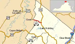 - ↑ Google (2011-01-28). "Virginia State Route 127" (Map). Google Maps. Google. Retrieved 2011-01-28.