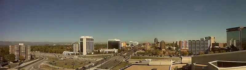 Virginia Village is a neighborhood of Denver, Colorado, roughly five miles southeast of downtown. The neighborhood consists of a mixture of town homes, single-family homes, shopping plazas, and mid to high-rise apartment and office buildings. It is served by the Colorado Station on the E, F, and H RTD light rail lines. The neighborhood is bounded on the west by Colorado Boulevard; on the southwest by Interstate 25; on the south by Evans Avenue; on the east by Quebec Street; on the northeast by Cherry Creek; and on the north by Mississippi Avenue. Holly Street divides the Virginia Village neighborhood into two areas, each represented by a neighborhood association. The area west of Holly Street comprises the Virginia Village Ellis Community Association[1], while the area to the east of Holly comprises the Cook Park Neighborhood Association[2].