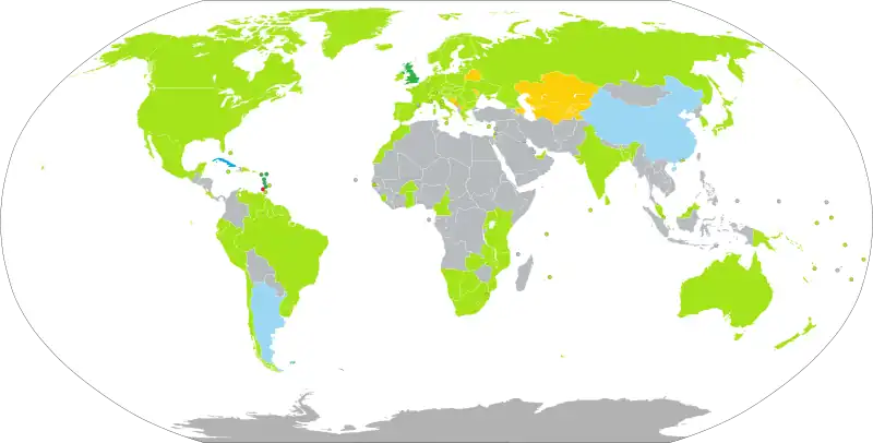 Holders of passports issued by the following 102 jurisdictions can enter Grenada without a visa for a maximum stay of 3 months (unless otherwise noted).[2][1] Extension of stay may be obtained at the Immigration Authorities Office in Grenada.