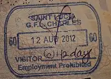 - ↑ "Saint Lucia visa requirements" (PDF). Archived (PDF) from the original on 2017-09-24. Retrieved 2018-07-22.