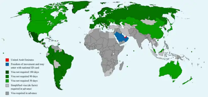 The visa policy of the United Arab Emirates allows citizens of certain countries to enter the United Arab Emirates without a visa.