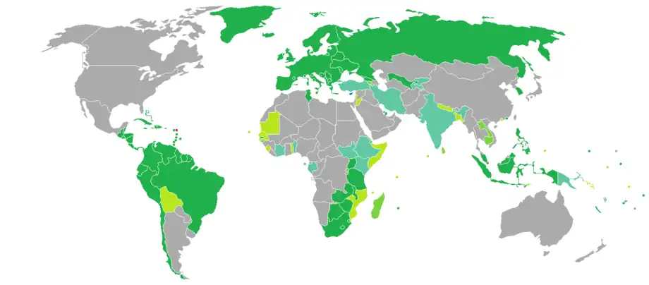 - ↑ Country list - Yellow fever vaccination requirements and recommendations; and malaria situation; and other vaccination requirement