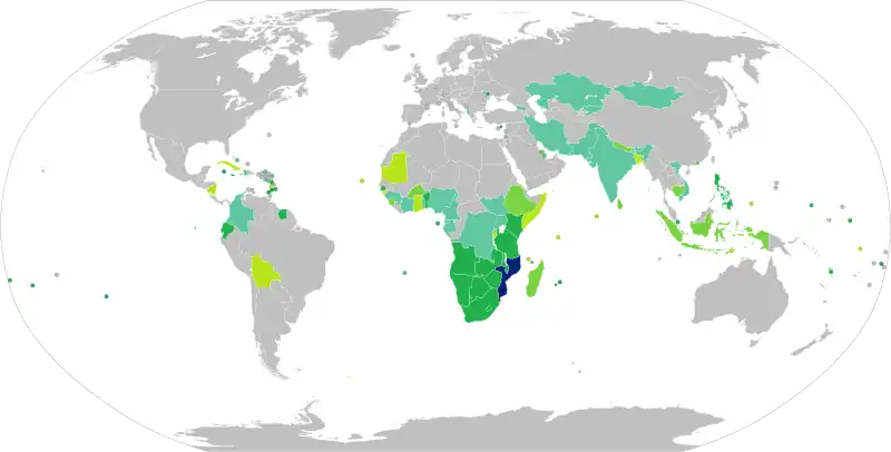 - ↑ Country list - Yellow fever vaccination requirements and recommendations; and malaria situation; and other vaccination requirement