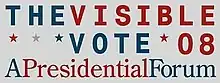 The Visible Vote ’08: A Presidential Forum aired live on August 9, 2007 on the TV channel Logo. It was the first-ever live televised forum with U.S. Presidential candidates discussing solely LGBT-related issues.[1] Logo co-sponsored the event, the first live one in its history,[1] with the Human Rights Campaign.