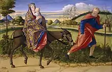 The painting cycle of Life of the Virgin for Scuola degli Albanesi[20] dates to 1504–1508 and was largely executed by Carpaccio's assistants. The images are now divided among the Accademia Carrara of Bergamo, the Pinacoteca di Brera in Milan, and the Ca' d'Oro in Venice.