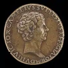 He was first noted for his work with medals. Gambello was granted the title "Maestro della Stampe" at the Venetian Mint in 1484. Instead of using the established techniques of casting medals in sand or using the lost-wax process, he perfected a method for stamping medals in high relief. This led to the ability to get more detail and create larger production runs.[1] Some of his works reside at the Cleveland Museum of Art.[2]