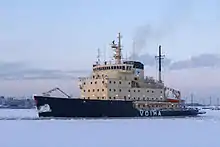 Voima is a Finnish state-owned icebreaker. Built by Wärtsilä Hietalahti shipyard in Helsinki in 1954, she was the first icebreaker in the world to be equipped with two bow propellers[5][6][7] and generated widespread publicity that helped the Finnish shipbuilding industry to become the world leader in icebreaker design.