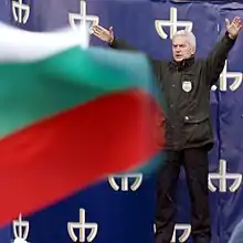 Volen Nikolov Siderov (Bulgarian: Волен Николов Сидеров [ˈvɔlɛn ˈsidɛrof]; born 19 April 1956) is a Bulgarian far-right politician and chairman of the nationalist party Attack. He has been the editor of numerous newspapers and has authored five books.[1]