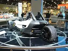 The Volkswagen GX3 was a concept car created by project Moonraker, which was initiated by Stefan Liske, former director of group product strategy at Volkswagen. The GX3 was first shown at the 2006 Greater Los Angeles Auto Show. It was considered an unusual concept, since it was three-wheeled and sometimes considered more of a motorcycle concept than a concept car, but it did feature good performance for a projected cost of only about US$17,000.