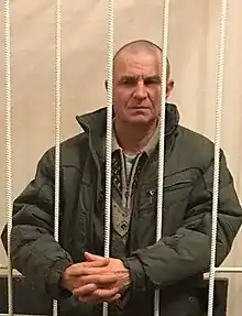 Volodymyr Dudka (Ukrainian: Володимир Дудка, Russian: Владимир Дудка, born September 30, 1964, Sumy, Ukraine) is a political prisoner of the Kremlin.[1] One of the accused in the case of the so-called 'Crimean terrorists' (group of 'Sevastopol saboteurs'). Detained by the FSB on November 9, 2016. Sentenced to 14 years in prison.[2] Reserve captain 2nd rank of the Ukrainian Navy, former Commander of the Simferopol control ship (1997—2001). Served at the Ministry of Emergency Situations in Crimea before the arrest.[2]