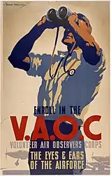 The VAOC was staffed by civilian volunteers and reached an estimated peak strength in 1944 of about 24,000 personnel and 2,656 Observation Posts. After the end of the war, the VAOC was reduced to a cadre in December 1945 before being disbanded on 10 April 1946.