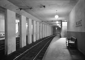 Volvat was an underground rapid transit station situated on the Røa Line, 3.4 kilometers (2.1 mi) from Stortinget in the city center.[4] Volvat was located at the intersection between the metro line and Sørkedalsveien.[5] It featured two side platforms, each long enough for two-car trains.[2]