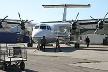 | Bombardier Dash 8 | DHC-8-102, DHC-8-311, DHC-8-314, DHC-8-402 | 24 | Up to 37 passengers in the 102 and 50 in the 300 series.[6] The 402 can carry 78 passengers but is not listed at the Transport Canada site. |