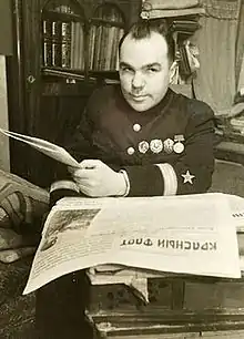 Later he became an editor of Krasnoflotets (Russian: Краснофлотец, "Red Fleet sailor") magazine. He battled at the fronts of Winter War and German-Soviet War, worked as war correspondent for Pravda newspaper. Since 1944 he worked as editor of Znamya magazine.