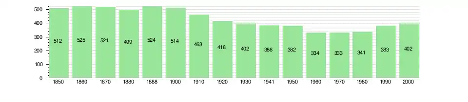 Vullierens has a population (as of December 2020) of 542.[6] As of 2008, 11.5% of the population are resident foreign nationals.[7] Over the last 10 years (1999–2009 ) the population has changed at a rate of -0.7%. It has changed at a rate of -3.1% due to migration and at a rate of 2.1% due to births and deaths.[8]