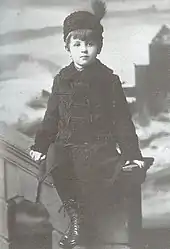 John Ruskin was Oscar Wilde's first choice as godfather to Vyvyan, but he declined because of his age.[2] Wilde turned to Mortimer Menpes, who accepted.[3] According to Vyvyan Holland's accounts in his autobiography, Son of Oscar Wilde (1954), Oscar was a devoted and loving father to his two sons and their childhood was a relatively happy one.[4]