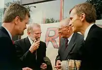 After the collapse of the communist regime, Bartoszewski served twice as the Minister of Foreign Affairs from March through December 1995 and again from 2000 to 2001.[3] He was also an ambassador and a member of the Polish Senate. Bartoszewski was a close ally and friend of Polish anti-Communist activist and later president Lech Wałęsa.[4]