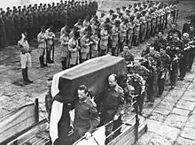 A British Court of Inquiry convened on 7 July that year investigated the crash of Sikorski's Liberator II serial AL 523, but was unable to determine the cause, finding only that it was an accident and "due to jamming of elevator controls", noting that "it has not been possible to determine how the jamming occurred but it has been established that there was no sabotage."[10] The Polish government refused to endorse the report, due to the contradiction about the cause not being determined but sabotage being ruled out, and pursued its own investigation, which suggested that the cause of the accident cannot be easily determined.[11] The political context of the event, coupled with a variety of circumstances, immediately gave rise to much speculation that Sikorski's death had been no accident, and may have been the direct result of a German, Soviet, British, or even Polish conspiracy.[1][12][13][14][15][16]
