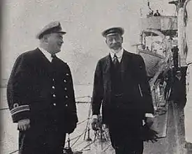 While Beckett was serving with the Harwich Force, he was befriended by the renowned English author Rudyard Kipling, and was invited to his home Bateman's, in East Sussex. Kipling was very interested in the Royal Navy, and used Beckett as a source of information for his 1916 naval classic, "Sea Warfare". In one of Kipling's letters, he colourfully describes his meeting with Lieutenant Beckett, and states "he held us breathless or weak with laughter".[2] Beckett also enjoyed their meeting, and went on to visit Bateman's again. He found they had various common interests, including a connection to India, where both men had been born. Kipling had previously based the character Findlayson, the hero of his story The Bridge Builders on Beckett's great uncle, the well known Indian bridge-builder Frederick Thomas Granville Walton.[3]