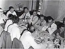 Czarnecki (3rd from the left on the window side) at a meeting of former Polish Buchenwald CC prisoners, fot. Kazimierz Nowicki