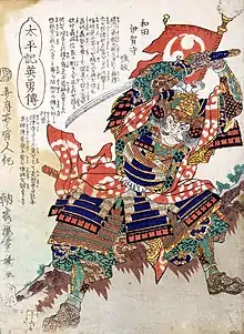 Wada Koremasa (和田 惟政, 1536–1571) was samurai and senior retainer of the Ashikaga Shogunate.[1] The Wada clan were a powerful ninja family in the Kōka ikki in Kōka District until Koremasa was granted land in Settsu Province in 1568 as a reward for his support for Ashikaga Yoshiaki and Oda Nobunaga.