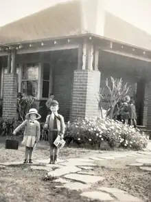 The school was established in 1943 by K. A. Wyndham.[2] In February 1942, Wyndham and her stepmother purchased a house known as Telerah from the Protestant Alliance Friendly Society for £1750. The house had previously been owned by George Christie. Christie was an accountant who had served as an Alderman on Municipality of Strathfield from 1892 until 1898.[3] Upon her purchase of the property Wyndham changed the name to Wadham and opened a school. The school catered to children from pre-Kindergarten (known as nursery) to Year Six.[4] Having been an early 20th Century domestic building the house was then adapted to school use. It had been built in the Federation style and was single storied face brick with a distinctive diamond pattern asbestos tile roof, a wrap-around verandah on three sides and a central hall. Miss Wyndham was strong on teaching cultural activities outside the curriculum. The school staff included Miss Joyce Foreman and Miss Heather Gell.[5] Under the direction of Gell and with Charles Mackerras conducting the children performed in pantomimes at the Theatre Royal each Christmas including the Pied Piper of Hamelin in which Leonard Teale played the Pied Piper.[6] In 1957, Wadham was purchased by Meriden, a neighbouring Anglican school, and was used as a sub-primary campus principally for girls, but also for nursery and kindergarten boys. In 1967 Meriden closed the Wadham campus having purchased land for its entire junior school in Redmyre Road, Strathfield.[7] After its closure, the building was demolished and two large 1970s style face-brick houses now stand in its place at 9 and 11 Wallis Avenue Strathfield.