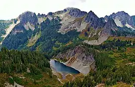 Wahpenayo Peak is a 6,231-foot summit in the Tatoosh Range which is a sub-range of the Cascade Range.[1] It is located south of Mount Rainier within Mount Rainier National Park, in Lewis County of Washington state. The mountain is named for Wahpenayo, a native American chief who was the father-in-law of Indian Henry.[3] Precipitation runoff on the south and east side of the peak drains into tributaries of the Cowlitz River, whereas the north side drains into tributaries of the Nisqually River.
