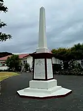 The memorial was unveiled on 26 March 1881.[4] More than 3,000 Maori nationwide arrived for the unveiling of the memorial and a substantial meeting house or runanga whare. There was also a hui (gathering) to discuss three clauses in the Treaty of Waitangi with a view to setting aside past intertribal conflicts.[5] At the time of the unveiling, the Governor-General Sir Arthur Hamilton Gordon had been asked to attend. However, the Minister of Native Affairs, William Rolleston had come in his place. Ngāpuhi leaders, expressed their disappointment but were satisfied Rolleston had come as the Governor-General's representative.[6]
