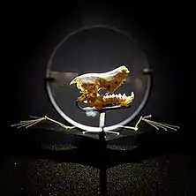 The Waitomo Caves Museum has a small, but significant, subfossil palaeofaunal collection (bones of extinct species), owing to the plentiful tomo (the dolines or sinkholes for which Wai-tomo is named) scattered throughout the surrounding karst landscape. It holds fossil remains and speleological specimens from local caves. The museum has a long association with eminent geological and palaeontological experts, such as Paul W. Williams and Trevor Worthy. Specimens from the museum collection are referenced in dozens of books and published journal articles.[5][6][7][8][9][10][11]
