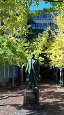 Statue of Bowman Gray (now relocated) at the former entrance to the School of Medicine