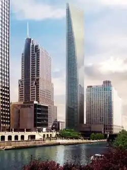Waldorf-Astoria Hotel and Residence Tower Chicago was a planned[3] hotel and condominium skyscraper that would have been 1,265 feet (386 m) tall. The Prime Group was in charge of the project, which was proposed at a cost of $610 million. The building would have been located one block from the Chicago River,[1] and north of the Sheraton Chicago in the Streeterville neighborhood of the Near North Side community area of Chicago.[4] Another of the building's developers, the Fordham Company, was also the initial developer of the now-cancelled Chicago Spire.[1][5]