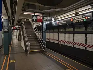 A fifth exit, which led to the southwestern corner of Pine Street and William Street,[45][46] was closed after April 1992.[47] An exit to the northeast corner of the same intersection was removed and slabbed over in 1948.[48] The northeast-corner exit had been closed by 1944.[49][50] Exits also existed to the northwest and southeast corners of the same intersection until some point after 1944.