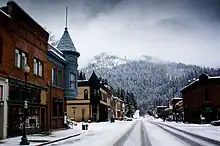 The 1997 film Dante's Peak was shot on location in Wallace, which was portrayed as the fictional town "Dante's Peak" in Washington state, with a large hill just southeast of the town digitally altered to look like a volcano.[55][56][57]