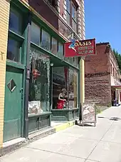 A mining community with a "work hard, play hard" attitude, Wallace became well known for a permissive approach toward drinking, gambling and decriminalized prostitution.[26] From 1884 to 1991, illegal yet regulated brothel-based sex work openly flourished because locals believed that sex work prevented rape and bolstered the economy, so long as it was regulated and confined to the northeastern part of town.[27] Throughout the rest of the country, progressive era politics drove red-light districts underground, but madams in Wallace enjoyed unprecedented status as influential businesswomen, community leaders, and philanthropists.[27] Between 1940 and 1960, for example, an average of 30 to 60 women came into town to work in one of the five well-established brothels.[28]