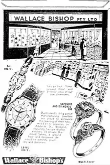 - ↑ Aaron Weinman. "Classy Rebrand For Wallace Bishop Jewellers". Jeweller Magazine. Retrieved 25 September 2017.