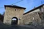 Višegradska kapija (transl. Visegrad Gate) was the main entry point to town and is one of the three city gate-towers in the Vratnik Old Town with the other two being Sirokac Tower and Ploca Tower. It was built between 1727 and 1739, in limestone and a special Bosnian stone "hreša" with roof shingles. Traffic went east via the main road towards Visegrad (thus the name) and continued further to the east towards Istanbul.[1]