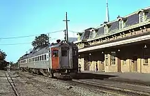 Wallingford station is a train station on the New Haven–Springfield Line located in Wallingford, Connecticut. It is served by the CT Rail Hartford Line (consisting of Connecticut Department of Transportation and Amtrak trains) and by Amtrak's Northeast Regional, and Valley Flyer. A new station with high-level platforms opened on November 6, 2017 to the north of the original station. The former station building is listed on the National Register of Historic Places as Wallingford Railroad Station.
