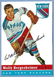 - ↑ Goldstein, Richard (2 October 2014). "Wally Hergesheimer, a Small Big Scorer for the Rangers, Dies at 87". The New York Times.