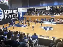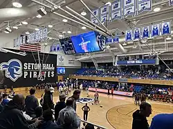 Walsh Gymnasium is a multi-purpose arena in South Orange, New Jersey on the campus of Seton Hall University. The arena opened in 1941 and can seat 1,316 people.[2] It was home to the Seton Hall Pirates men's basketball team before they moved to the Meadowlands in 1985 and then Prudential Center in 2007. Currently, the arena hosts the women's basketball and volleyball teams, but continues to host men's basketball for preseason exhibitions, postseason invitational games such as early rounds of the NIT, and occasionally a regular season non-conference game if there is a conflict with Prudential Center's event schedule. The building is part of the Richie Regan Recreation & Athletic Center, and, like the school's main library, is named for Rev. Thomas J. Walsh, fifth bishop of Newark and former President of the Board of Trustees.