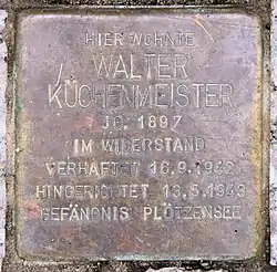 - ↑ "Walter Küchenmeister". Koordinierungsstelle Stolpersteine Berlin (in German). Berlin: AG Stolpersteine Reinickendorf. Retrieved 17 January 2019.