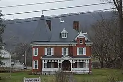 The Walter McDonald Sanders House is a historic house that forms the center of the Sanders House Center complex at Bluefield in Tazewell County, Virginia, United States. It was built between 1894 and 1896, and is a large two-story, three-bay, red brick Queen Anne style dwelling. A two-story, brick over frame addition was built in 1911. The house features a highly decorative, almost full-length, shed-roofed front porch; a pyramidal roof; and a corner turret with conical roof. Also on the property are the contributing limestone spring house, a frame smokehouse which contains a railroad museum, a frame granary, and an early-20th century small frame dwelling known as the Rosie Trigg Cottage, which houses the Tazewell County Visitor Center.[3]