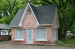 The Walter Patterson Filling Station is a historic automotive service station building on United States Route 65 in central Clinton, Arkansas. It is a small single-story brick building, with a steeply pitched gable roof. The front of the building is symmetrical, with a central entrance flanked by square single-pane display windows, and a cross-gable above the entrance. Built in 1936, it is the only gas station from that period to survive in the city, and is a good example of commercial English Revival architecture.[2]