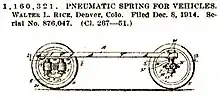 In 1914 he file a patent for a pneumatic spring for vehicles (patent 1,160,321).[10] He also worked on improvements to carburetor of early automobiles to increase mileage.[5] In 1920, he filed a patent for the Charge-forming device for internal-combustion engines (patent 1,406,416).[11]