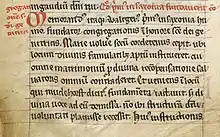 Waltger is not attested in any contemporary document, but is first mentioned in his hagiography, Vita sancti Waltgeri ("Life of Saint Waltger"), written in the 13th or 14th century by Wigand, a monk of Herford. Although the source is late, it is considered trustworthy in its basic outline.[1] According to the Vita, Waltger's grandfather, Aldolf, converted to Christianity during the reign of Charlemagne. His father's name was Dedda. The Vita includes a letter supposedly written by Pope Gregory III to Saint Boniface, the relevance of which to the life of Waltger is unclear and the authenticity of which is disputed.[2]