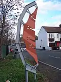Split Leaf, a sculpture by Jon Mills, marks the formal entrance to the marshes. The sculpture was made in spring 2003 by Jon Mills in conjunction with pupils from Coppermill Primary School and Mission Grove Primary School, as part of the "Take pART" programme.[4][5] It was intended to form a gateway to the park and to the marshes beyond.[5]