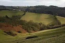 A bridle path runs from Calcot Hill Farm, along the southern face of the Walton Hill to the hamlet of Walton Pool. This crosses a footpath from Belbroughton and the A491 across farmland on its way towards the summit. From Walton Pool, a hamlet in the parish of Clent, two bridle paths follow the lines of two ridges, and meet to form the main south western spine of Walton hill. To the north west of Walton Pool there is a footpath which starts at St. Leonards church, the Parish church in Clent, and joins one of the two bridleways emanating from Walton Pool. Another path starts in the hamlet of Clatterbach, near the Vine Inn in Clent village and this allows direct access to the north western flank of Walton Hill.[1]